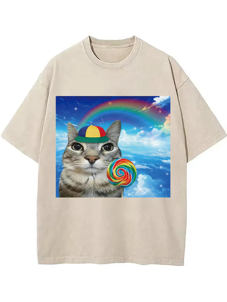 Wholesome Rainbow Cat Washed T-shirt