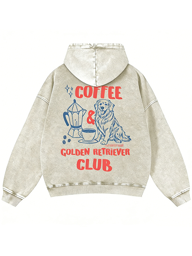 Coffee Golden Retriever Club Casual Washed Hoodie