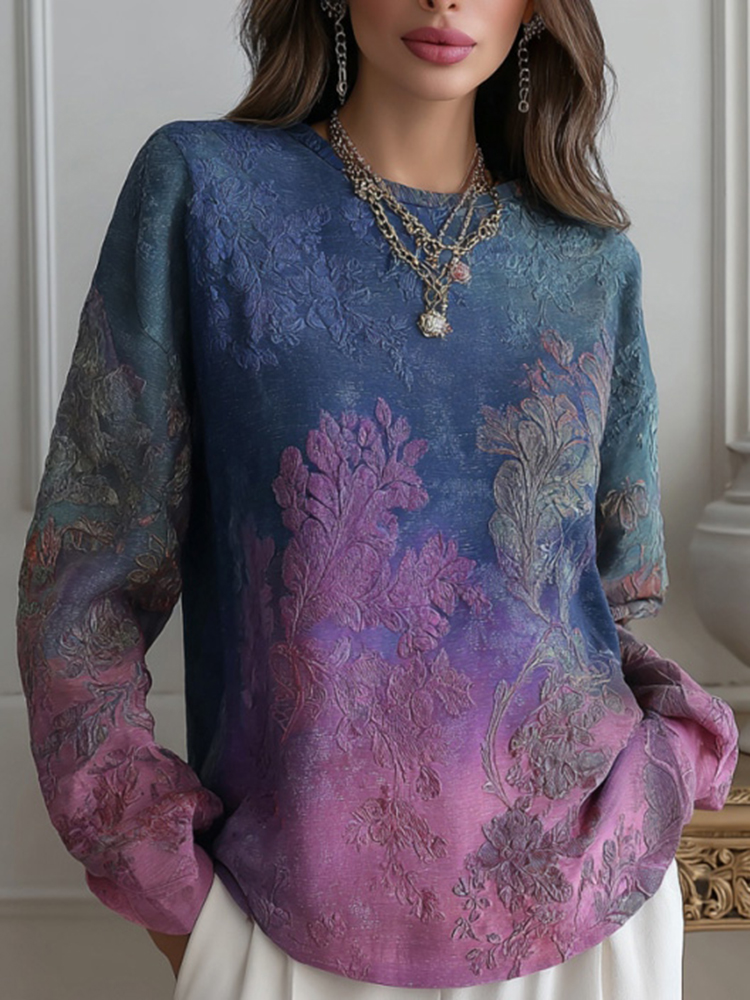 Women's Bohemian Floral V-neck Long-sleeved T-shirt