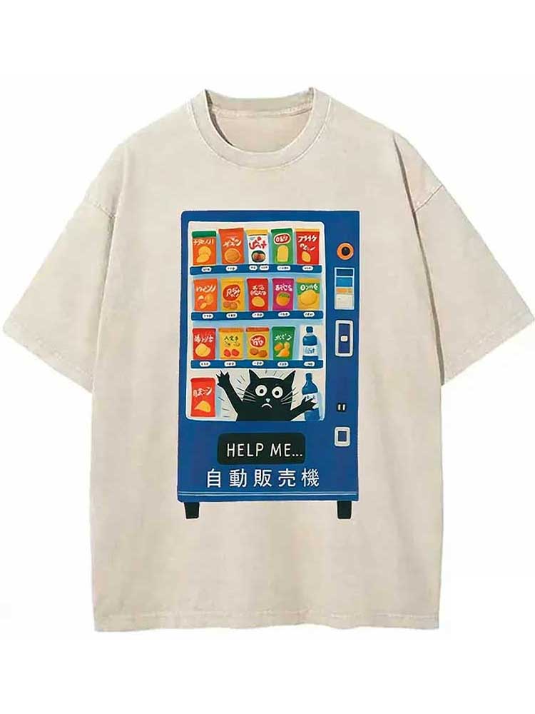 Cat Trapped In A Vending Machine Washed T-shirt