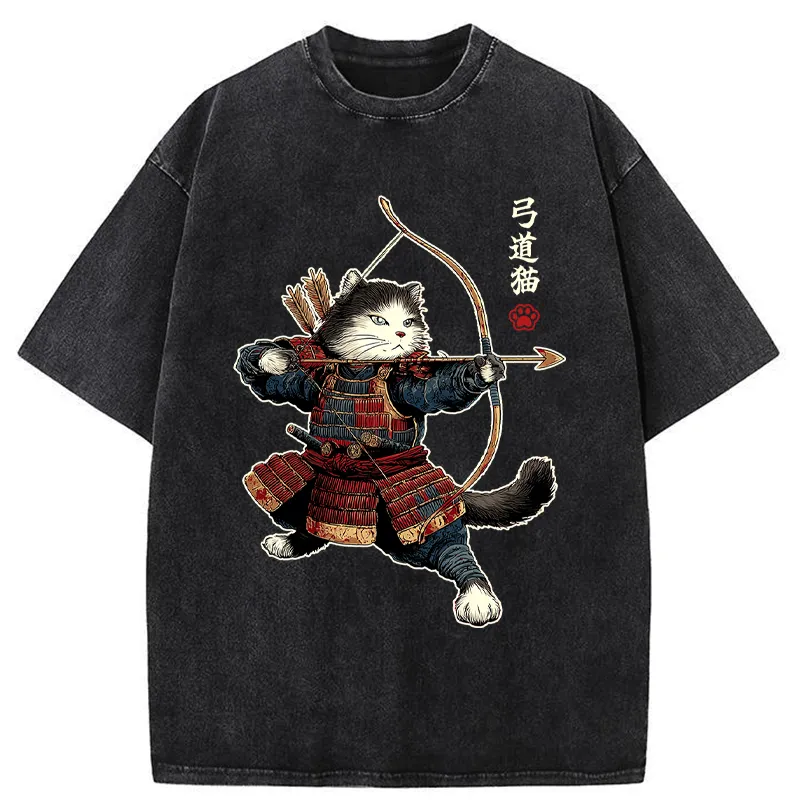 Retro Cat Eating Japan Ramen Washed T-shirt