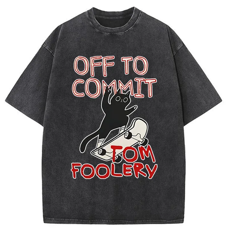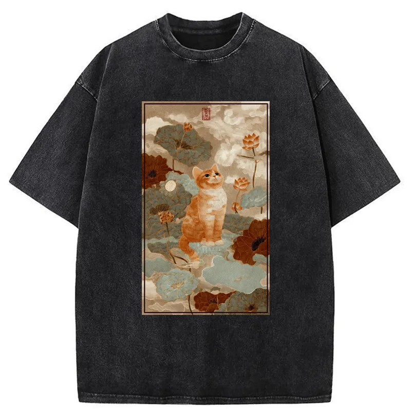 Tea Time With Shiba Inu And Black Cat Washed T-shirt