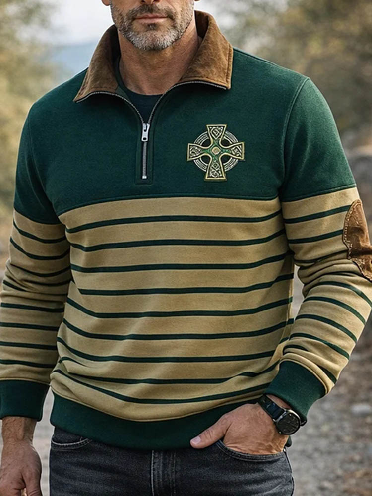Men's Celtic Cross Stripe Half Zip Sweatshirt