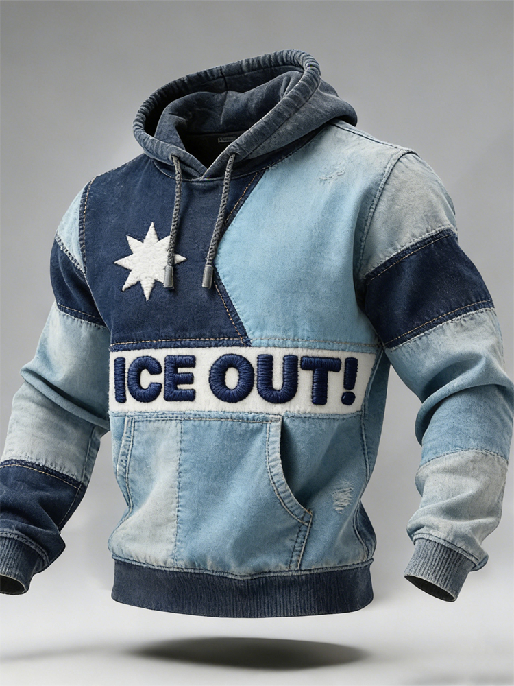 Ice Out Minnesota Flag Inspired Patchwork Hoodie