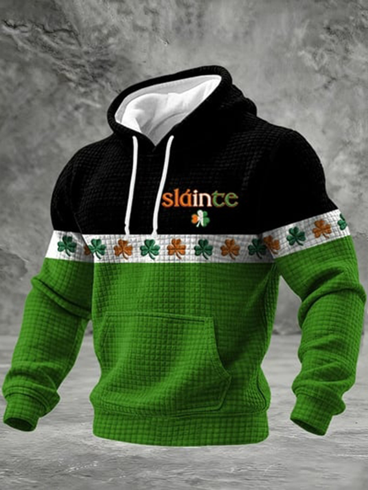 Irish Flag Color-blended Shamrock Pattern Casual Hoodie