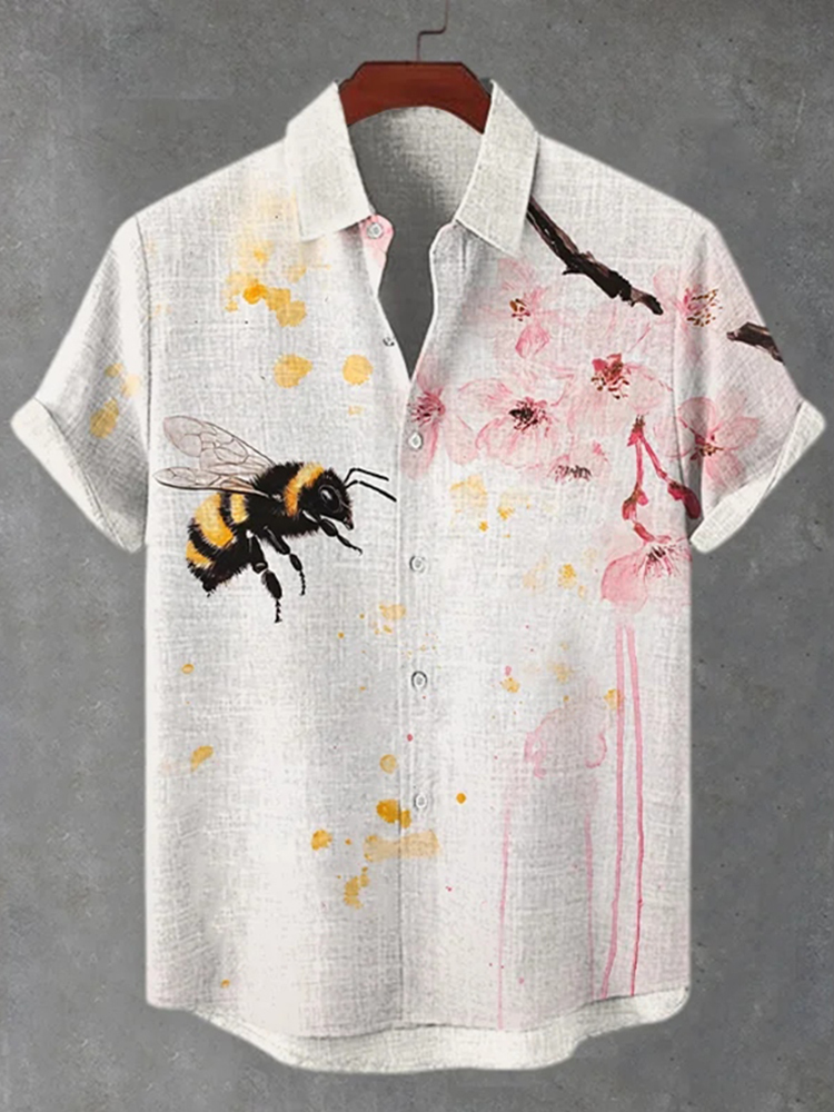 Men's Bees And Flower Ink Painting Print Casual Shirt