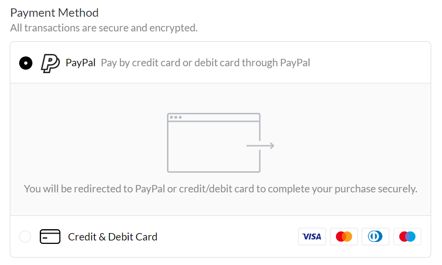 You can connect your PayPal, credit card, debit card, or bank account to PayPal for purchasing products. After submitting an order, you will be redirected to PayPal to complete the transaction.