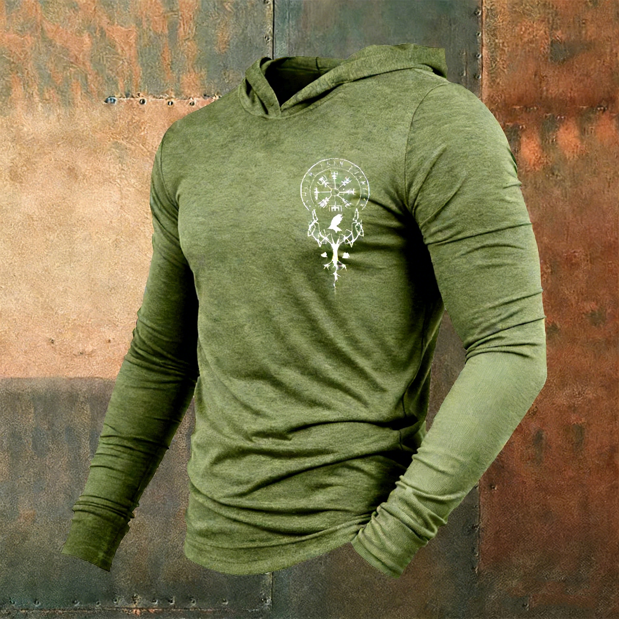 Men's Retro Viking Tree Of Life Rune Print Casual Hoodie