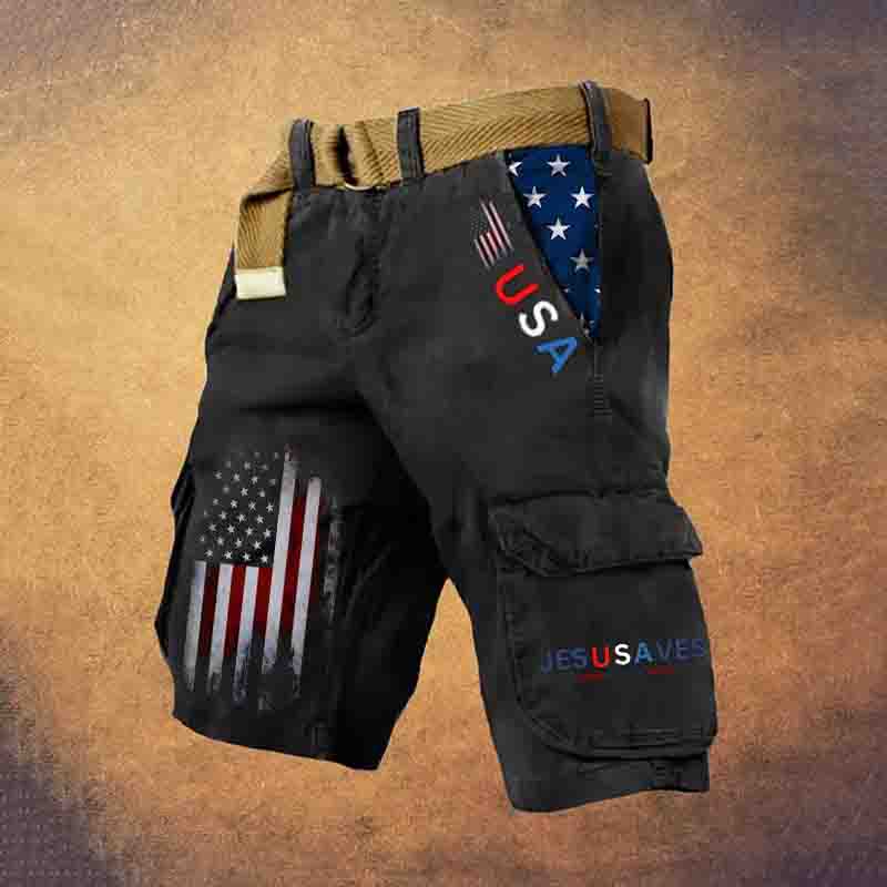 Men's Vintage Independence Day Usa Jesus Saves  print Cargo Shorts