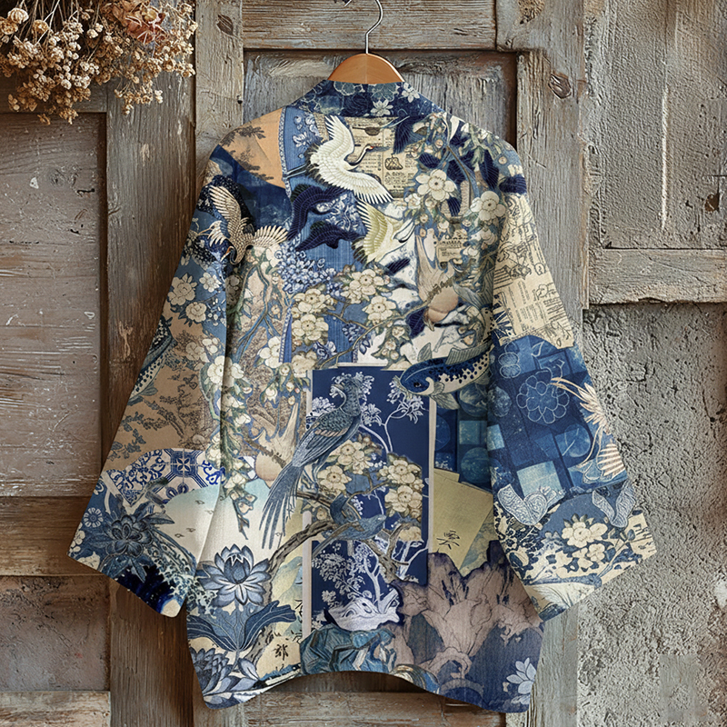 Pattern: Japanese Traditional Sashiko With Crane Art
